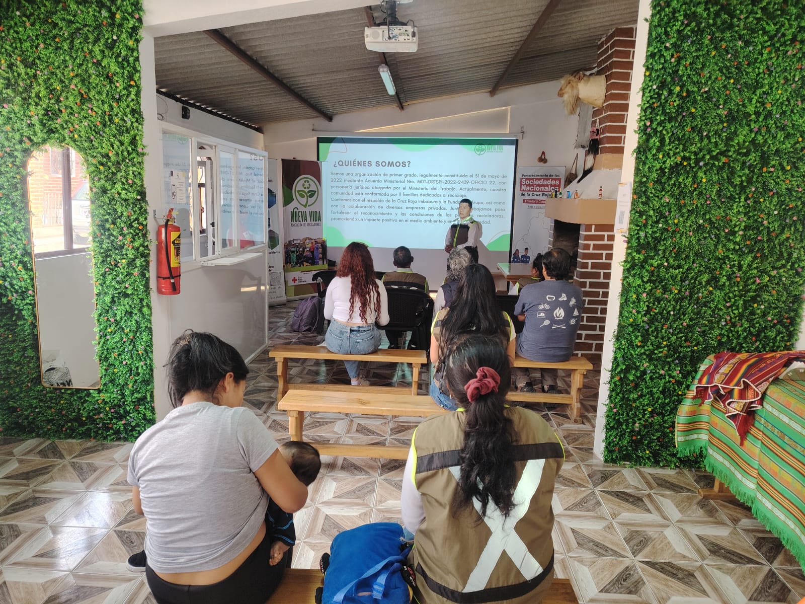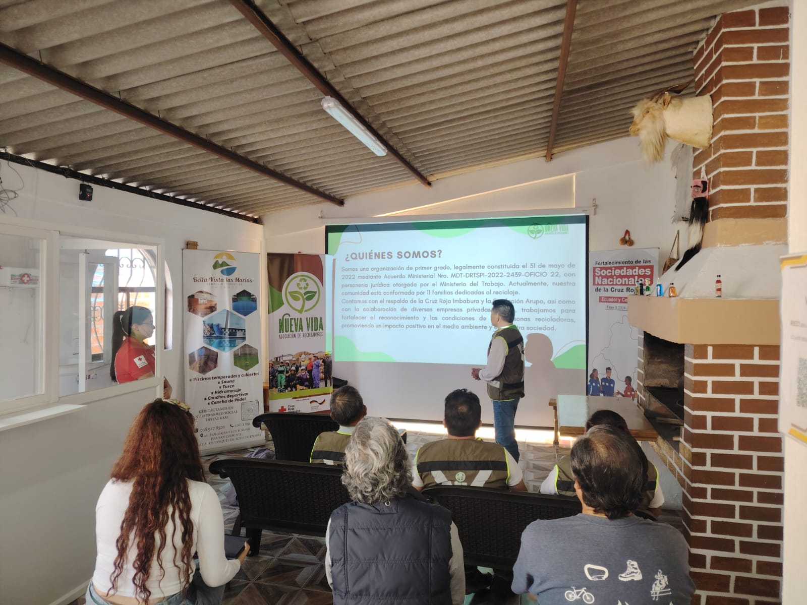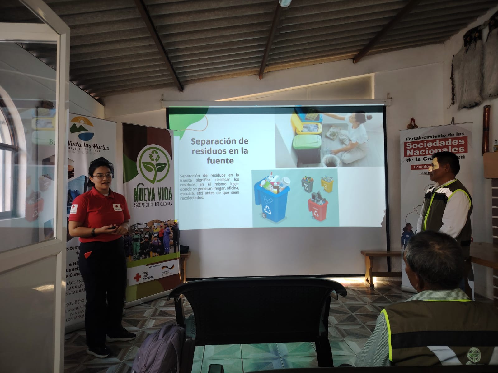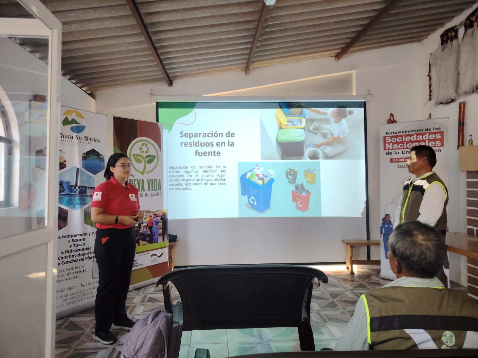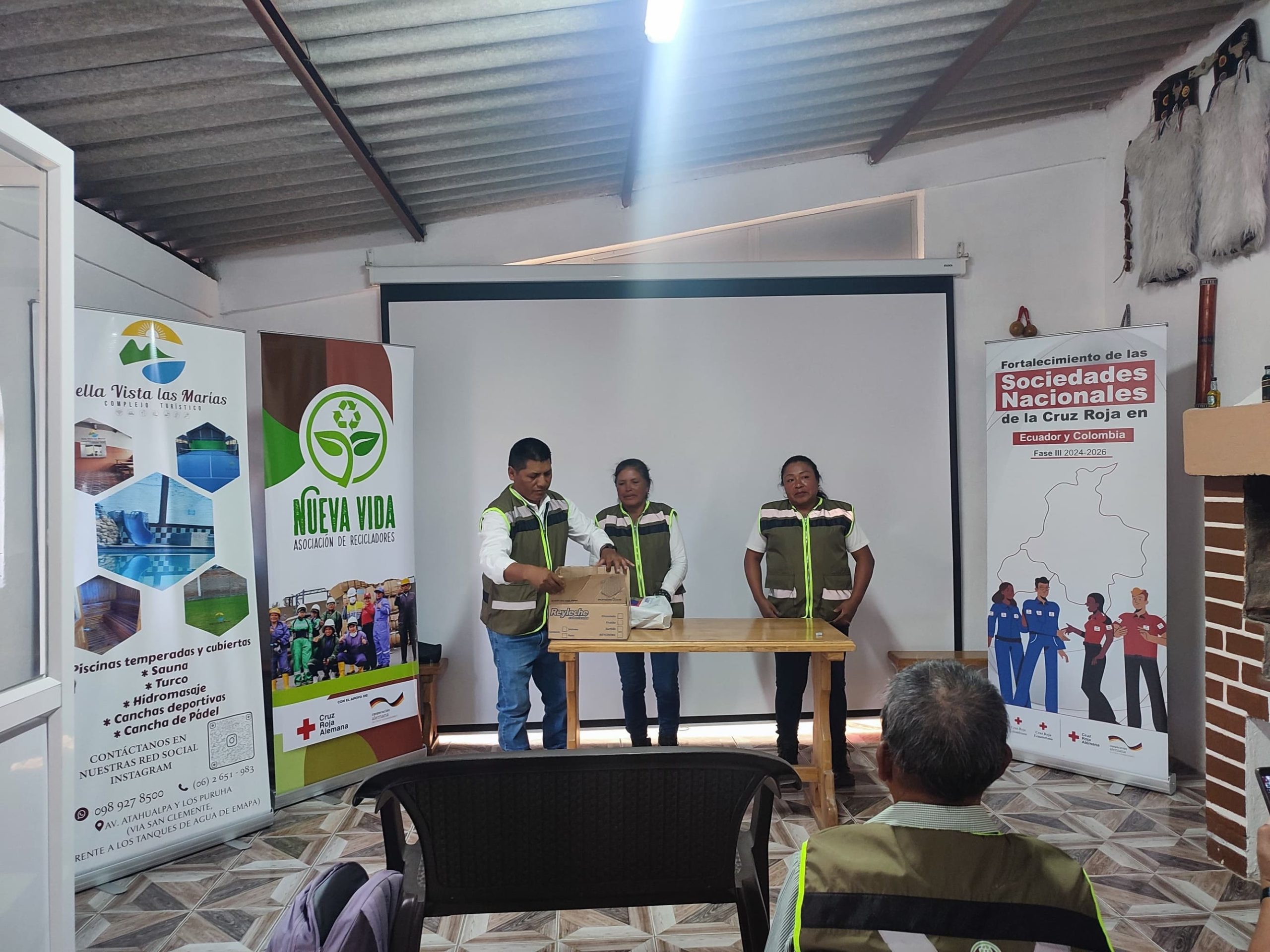 Taller de sensibilización y capacitación en el Complejo Turístico Bella Vista Las Marías, liderado por la Junta Provincial de Imbabura, en coordinación con los recicladores y recicladoras de base de la Asociación Nueva Vida. El objetivo fue fortalecer el reconocimiento social del trabajo de los recicladores/as de base, destacando su rol como actores clave en la gestión ambiental de la ciudad. A través de dinámicas participativas, se capacitaron al personal del complejo turístico en la correcta separación de residuos en la fuente, promoviendo un modelo de reciclaje inclusivo y sostenible.