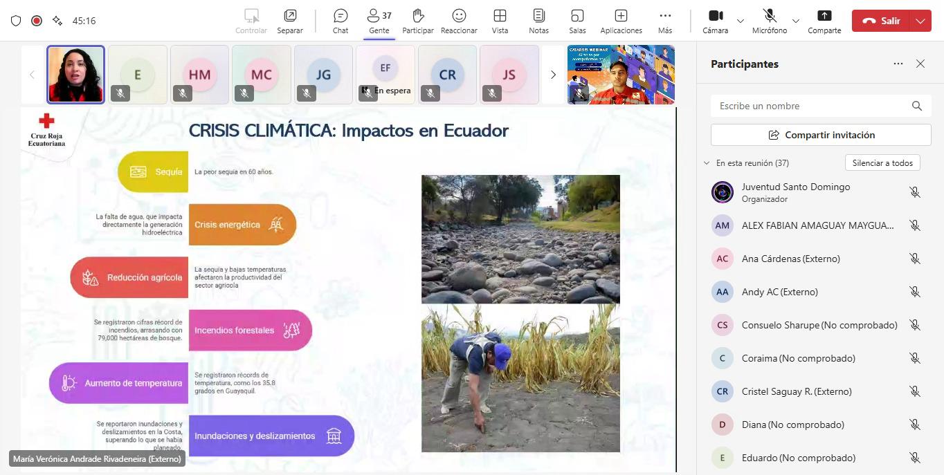 Como parte de las actividades con los voluntarios del Programa de Juventud, el 04 de julio de 2025 se llevó a cabo el Catarsis Webinar con la temática: Triple Crisis Planetaria. En este espacio participaron voluntarios y personal técnico de todo el país.