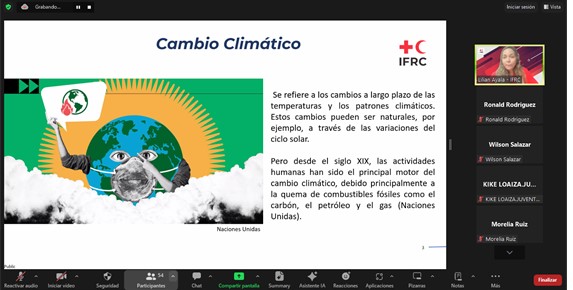 Desde Cruz Roja Ecuatoriana, la Coordinación Nacional de Juventud y la Coordinación Nacional de Gestión de Riesgos y Desastres, durante el mes de enero del 2024 realizaron una serie de charlas de Cambio Climático y Cuidado Ambiental, esta actividad tenía como finalidad sensibilizar a la comunidad en relación con estas importantes temáticas, además de generar capacidades en el personal humanitario que les permita participar en los retos de ideación generados por CRE y por la FICR (sin límita 2.0).
