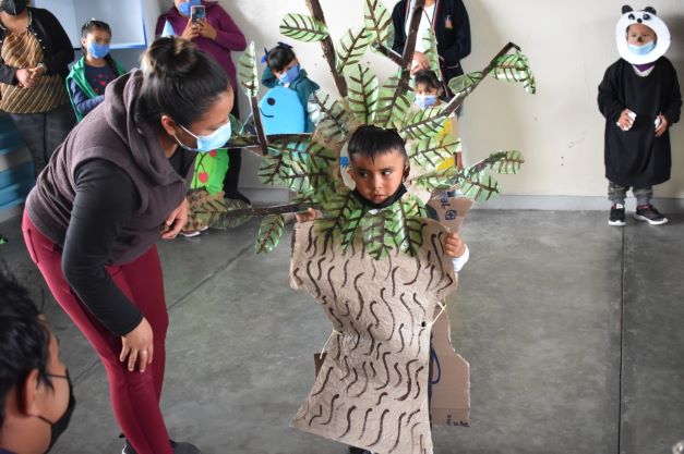 The children of the preschool of the community of Los Angeles Tetela were invited to participate in a costume contest using recycled materials based on the themes previously seen.