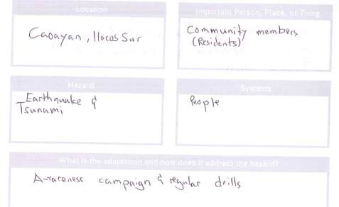 Lastly, the youth participants became involved with the activities and practices of being an advocate for earthquake and tsunami drills. Together with the Barangay officials and other agencies they have helped spread awareness about the hazards, in the area.