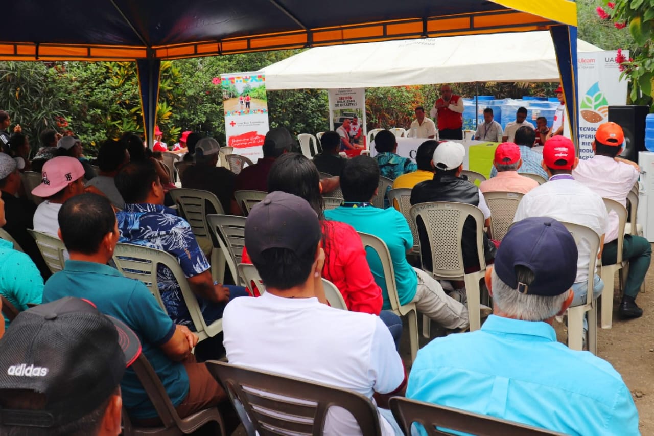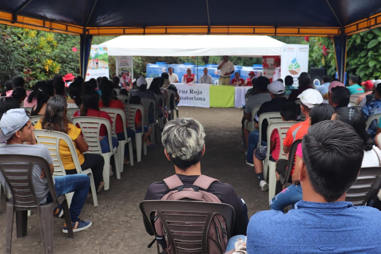 En este evento de entrega estuvieron presentes las autoridades provinciales de las Juntas Provincial y Cantonal, voluntarios e instituciones que nos han apoyado para el fortalecimiento de capacidades de los habitantes, como el Ministerio de Agricultura y Ganadería (MAG). Esta actividad contribuye para que las personas agricultoras incrementen los conocimientos en temáticas enfocadas en la manejo adecuado del recurso hídrico, y así mejorar su resiliencia frente al cambio climático.