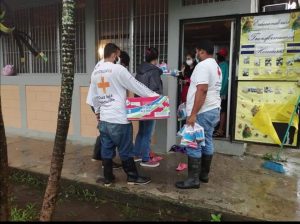 entregamos kits de alimentos, a damnificados ubicados en albergues temporales.