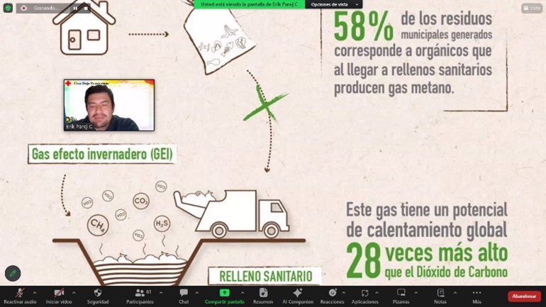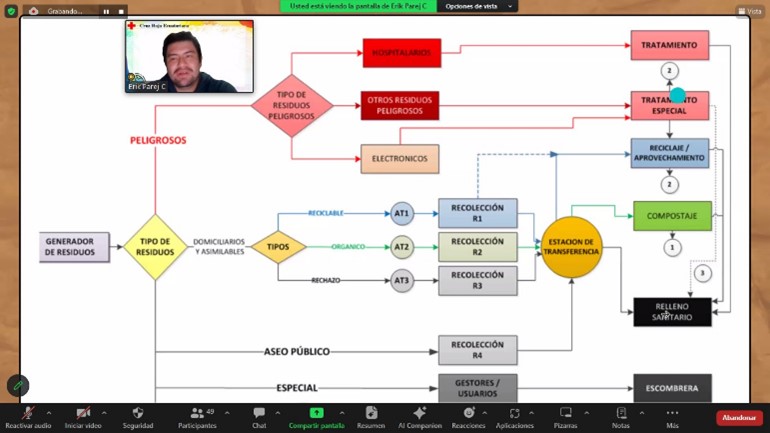 El 18/01/2024 se desarrolló la quinta charla de la serie de talleres virtuales de Cambio Climático y Cuidado Ambiental sobre “Manejo de Residuos” facilitado por Erick Pareja, consultor ambiental del proyecto “MEJORAMIENTO DE LA GESTIÓN INTEGRAL DE LOS RESIDUOS SÓLIDOS NO PELIGROSOS GENERADOS EN EL ECUADOR”, promovido por FIDES (Fondo Italo Ecuatoriano para el Desarrollo Sostenible) AME (Asociación de Municipalidades del Ecuador) Fundación ACRA.
