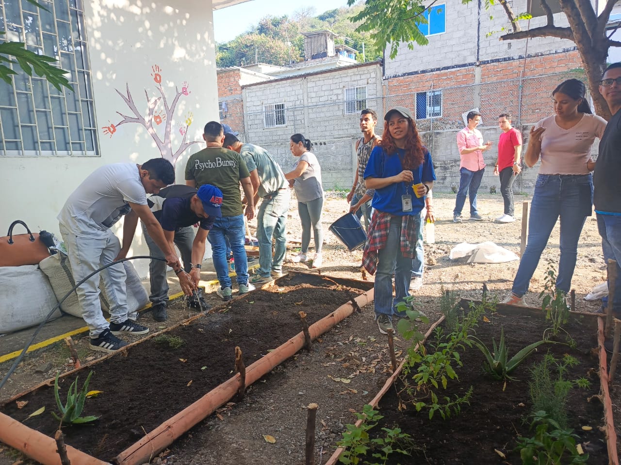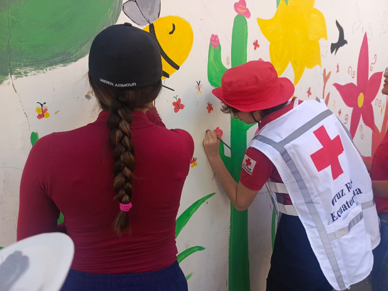 Las y los voluntarios de la Junta Provincial de Manabí del cantón Portoviejo, desde el área de juventud se ha trabajado con otras organizaciones juveniles del cantón la creación de un huerto medicinal en el centro de salud Andrés de Vera con los pacientes del SAI, en el cual se busca generar concientización y la creación de un espacio que resulte beneficioso para ellos y a su vez que le brinde esa conexión con la naturaleza, fomentando conciencia ambiental, en esta ocasión los voluntarios Group, niñez y juventud verde realizaron una minga junto con los pacientes del SAI en el cual pudieron alistar el espacio para la siembra de las plantas medicinales y la creación de un mural