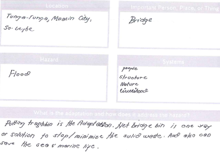 During Y-Adapt, an interactive games-based curriculum, youth have been working on putting trash bins around a net bridge. The bridge bin is a solution to stop/minimize the solid waste pollution in the river. This can also save marine life.