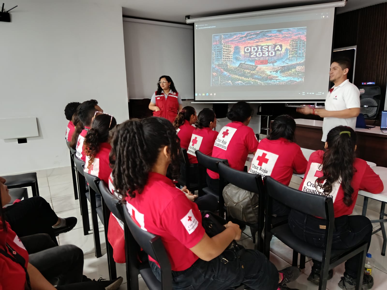 Los voluntarios de la Cruz Roja de la Junta Provincial de Manabí de la ciudad de Portoviejo a través del proceso de Limitless desarrollaron el juego Odisea 2030, el cual te invita a viajar en el tiempo para poder salvar el planeta del villano Shadow, en este juego recorrerás las diversas regiones del Ecuador donde en cada una cuenta con misiones como: clasificación de desechos, los gases de efecto invernadero, conservación de las especies. Por lo cual este juego no solo te invita a tomar conciencia ambiental sino también vas adquiriendo conocimientos sobre los efectos de la falta de acciones de la humanidad. En esta ocasión se hizo la aplicación del juego de sus primeros niveles que ya se encuentran desarrollados, con la finalidad de adquirir también mejorar para el mismo.