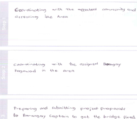 Lastly, the youth participants prepared and submitted the project proposals to the Barangay captain, to get the bridge fixed.