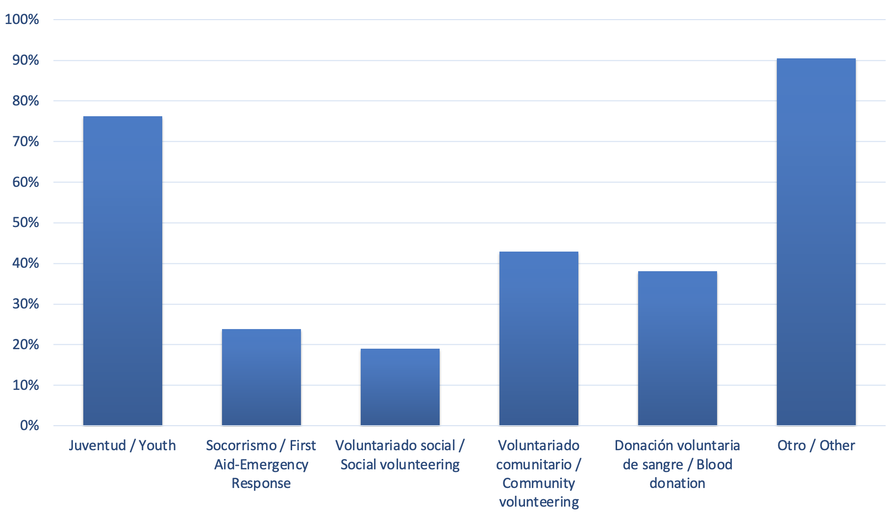 At the same time, 90% of National Societies reported having at least one additional volunteering programme not included among the main categories. This high figure reflects the breadth and diversity of volunteering modalities across the region—ranging from K9 units and mountain rescue teams to virtual volunteering, corporate volunteering, and other context‑specific initiatives.