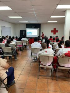 Personal de Cruz Roja Guatemalteca se capacita sobre medidas de prevención del COVID-19 y formas de desinfección de ambulancias.