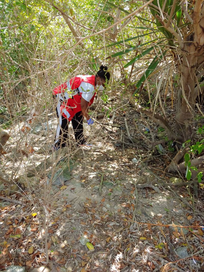 (English) Volunteers engaged in a clean up at the Mackinnons pond at Runaway Bay. A total of three hundred and sixty (360lbs) of litter removed from the mangroves at the pond. Pond serves as a breeding ground for fish and nesting area for various bird species. Volunteers in action keeping the environment clean and learning about the mangroves!!