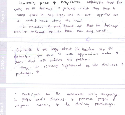 After that, the youth participants coordinated to the Barangay about the incident and observation. With this they Barangay made an appropriate action plan, that will address the problem. Then the Barangay did the necessary improvements of the drainage and pathways.