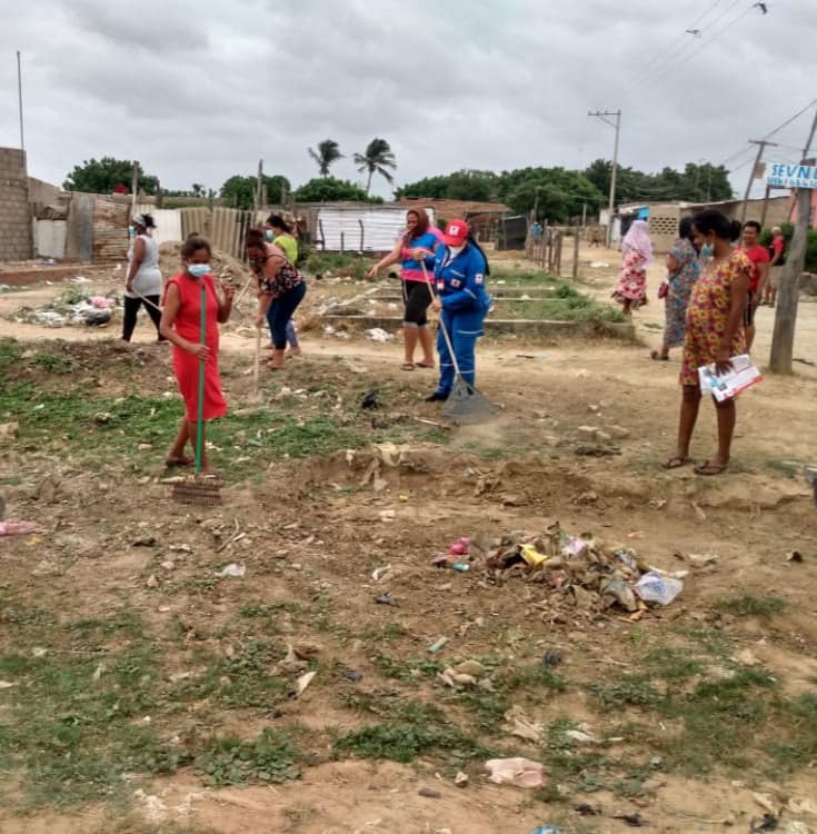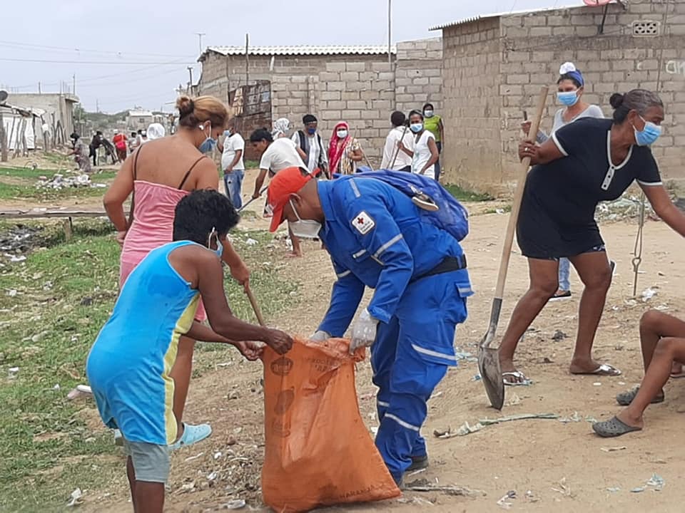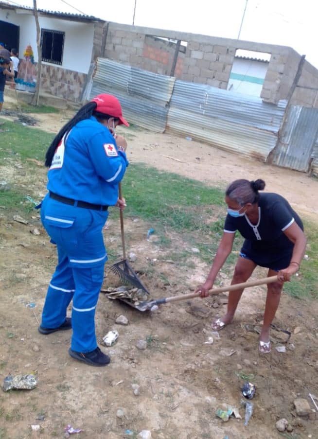 (English) En el marco del proyecto Humanitario para la Migración en Colombia continuando con las actividades del componente de salud comunitaria se llevó a cabo jornada de aseo y recolección de inservibles en la comunidad Manantial de Vida en el municipio de Maicao, de igual manera se realizó entrega de elementos de aseo a los líderes del comité de Salud Comunitaria del municipio, de esta manera contribuimos en el cuidado del medio ambiente. Lo anterior, con el apoyo de voluntarios y colaboradores de la Cruz Roja Colombiana en cooperación con la Cruz Roja Americana.