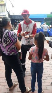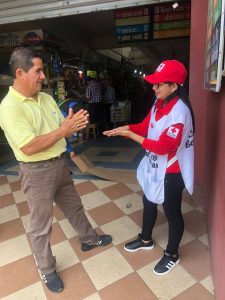En el mercado de la calle Bolívar, en Machala, nuestros voluntarios de Cruz Roja de El Oro difunden medidas de prevención para reducir los riesgos de infección por C