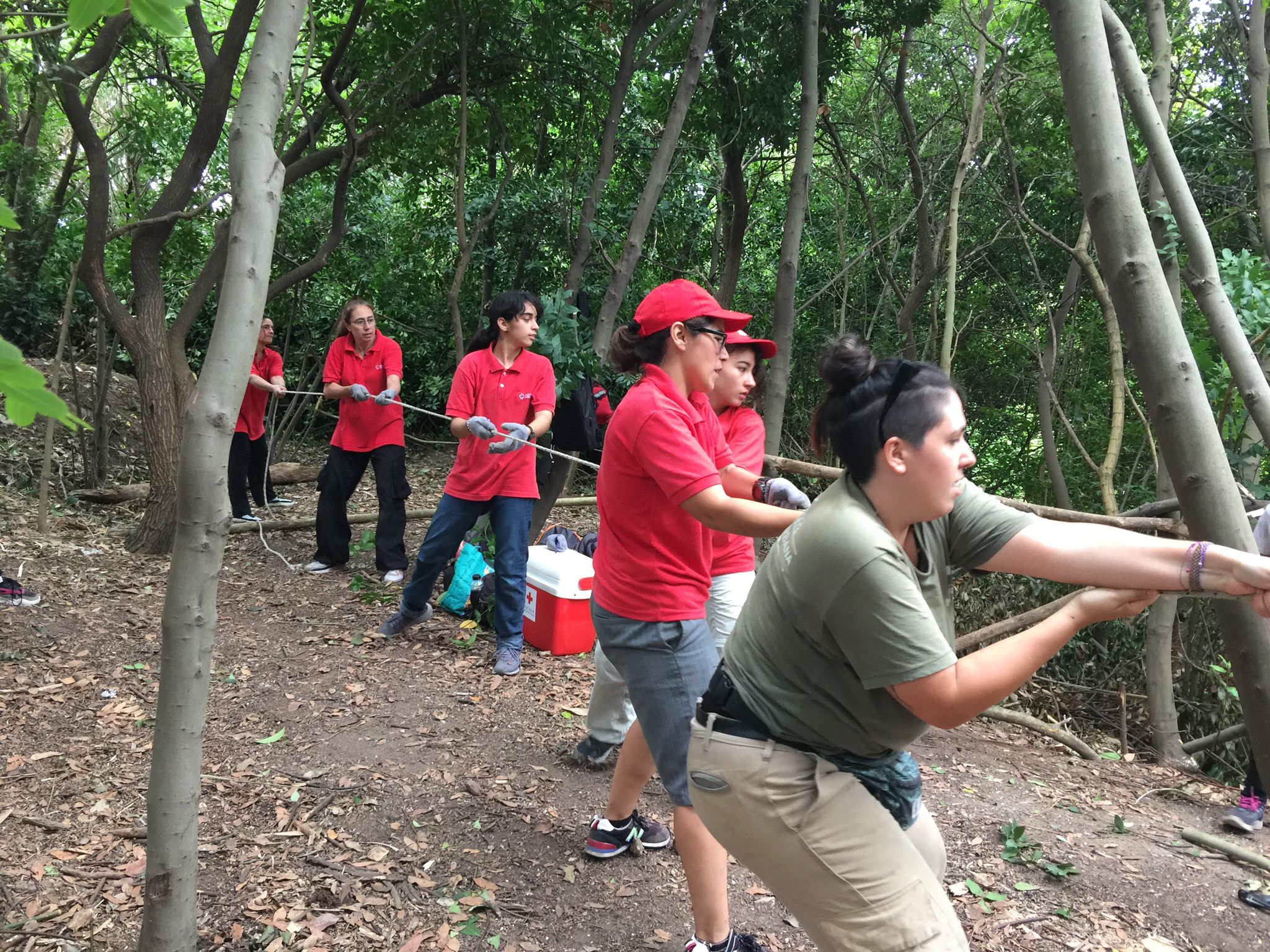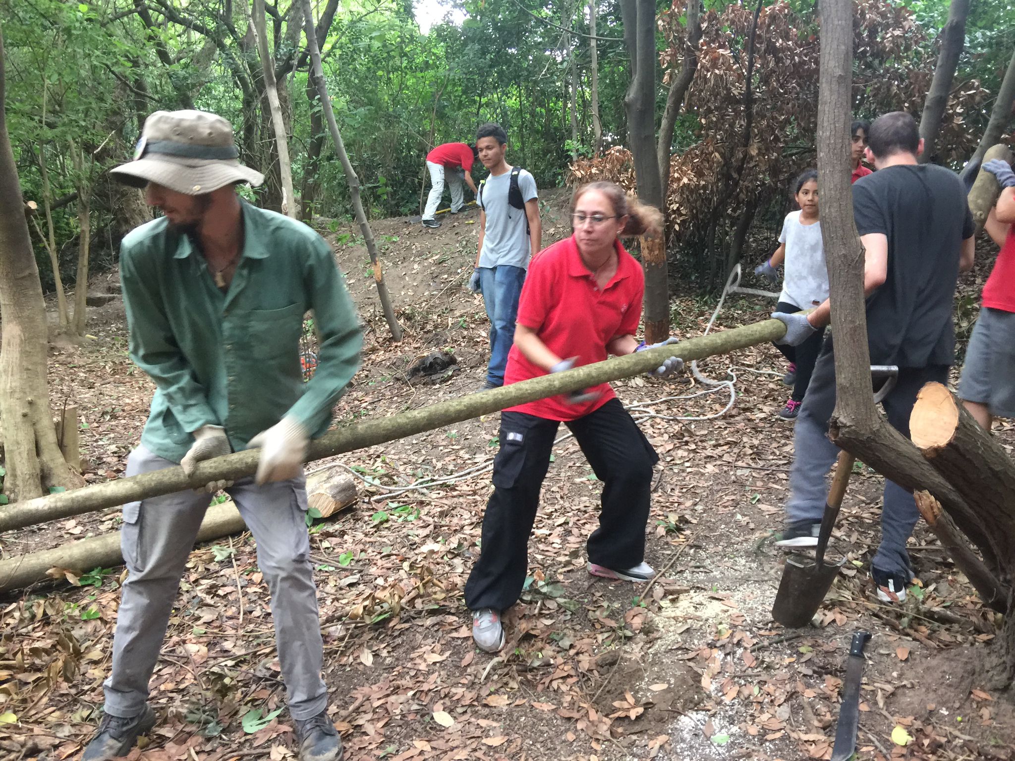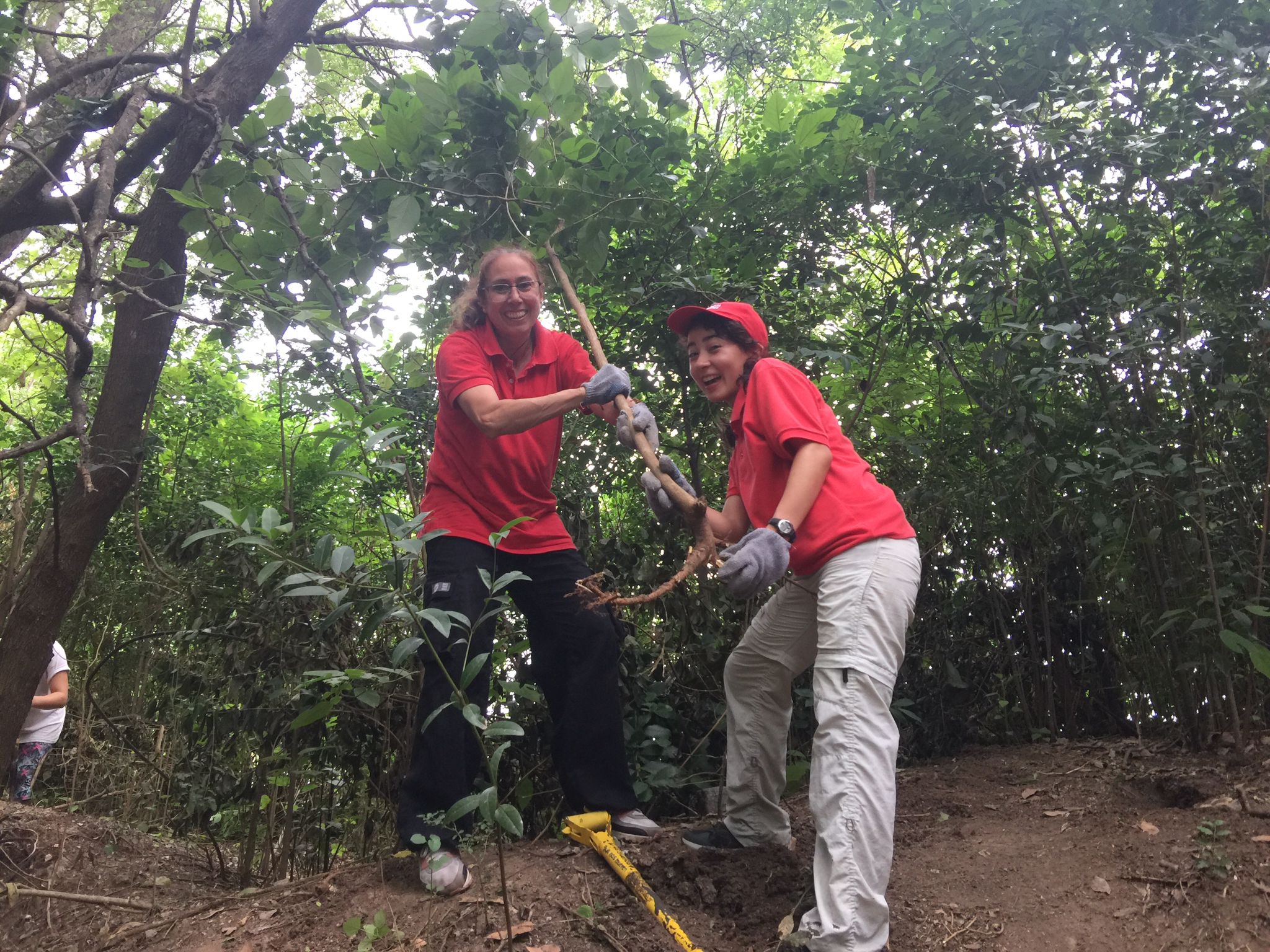 We helped to build some rails so people can see the stream in a safe way. Additionally we helped to control exotic plants