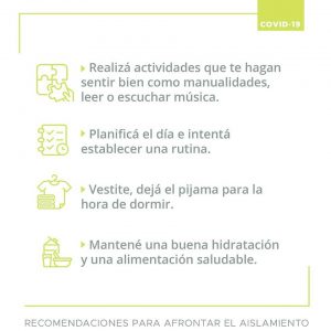 Cruz Argentina envia consejos sobre como afrontar el aislamiento. La situación de aislamiento durante varios días puede generar mucho malestar. Tené en cuenta algunas consideraciones que te pueden ayudar a disminuir la ansiedad y el estrés.