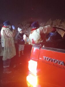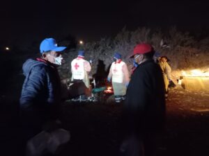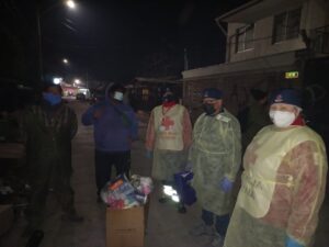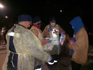 Durante una de las habituales rutas calle que realiza la filial Peñaflor-Malloco de Cruz Roja Chilena para mitigar los negativos efectos de la temporada invernal y la pandemia en las personas en situación de calle, la directora nacional de Gestión del Riesgo de la institución humanitaria, Yasmin Videla, y el coordinador del Equipo de Intervención en Eventos Masivos (EIEM), Ricardo Cabrera, participaron y conocieron de cerca el positivo impacto de este tipo de acciones para aliviar el sufrimiento de las comunidades en situación vulnerable.