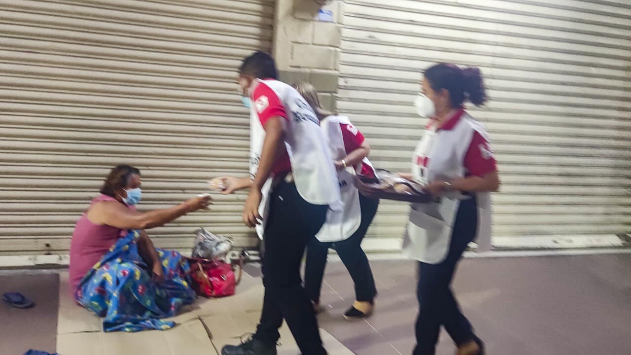 (English) Voluntarios de la Cruz Roja de El Oro, a través de la actividad #ManosSolidarias, realizaron la entrega de comida calienta a personas en situación de vulnerabilidad que se encuentran alrededor de hospitales y otras zonas de Machala.