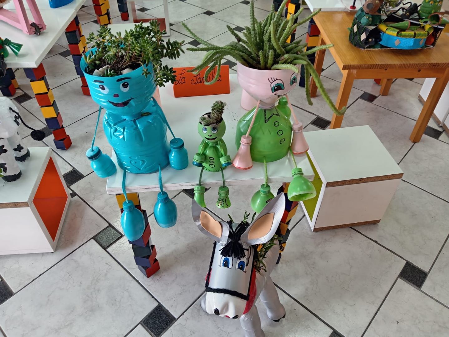 Bajo un modelo colaborativo, docentes, expertos y voluntarios coordinaron talleres de corte y pintura, así como sesiones de adopción y cuidado de plantas, fomentando el trabajo en equipo y el compromiso cívico. El proyecto generó espacios de aprendizaje al aire libre, reforzó la cohesión comunitaria y despertó el potencial creativo de los jóvenes, quienes descubrieron su capacidad para convertir residuos en objetos de valor estético y funcional.